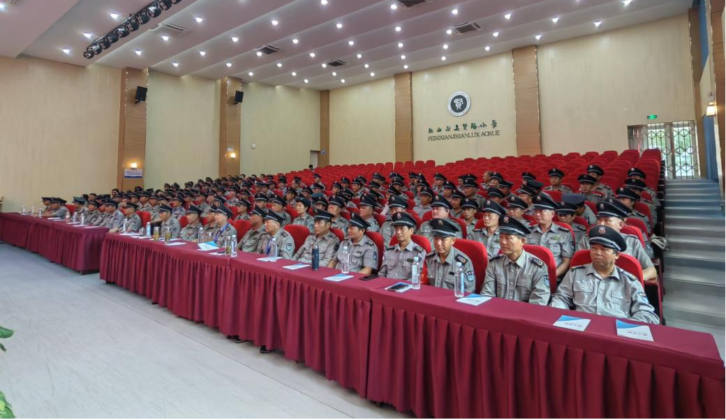 实操演练结束后,公司围绕保安员职责、法纪教育、保安服务管理条例教育等内容展开培训,理论培训环节,县公安局领导强调了八大件配备的必要性,并对保安员安全防范作出工作部署;随后县教体局领导说明“护学岗”的执勤要求,并运用案例展现校园周边秩序维护的关键时段。