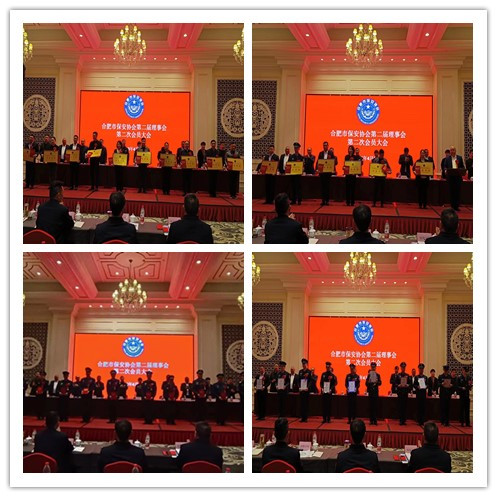 在听取和审议相关报告后,举行了隆重的颁奖仪式。副会长葛伦祥宣读了《合肥市保安行业2022年“二十大”警保联动巡逻表彰决定》,保安管理处处长黄建芳宣读了《合肥市保安行业支援瑶海区新冠疫情防控工作表现突出先进集体和先进个人表彰决定》。警保联动先进集体代表、先进个人代表,疫情防控表现突出先进集体代表、先进个人代表先后上台领奖。