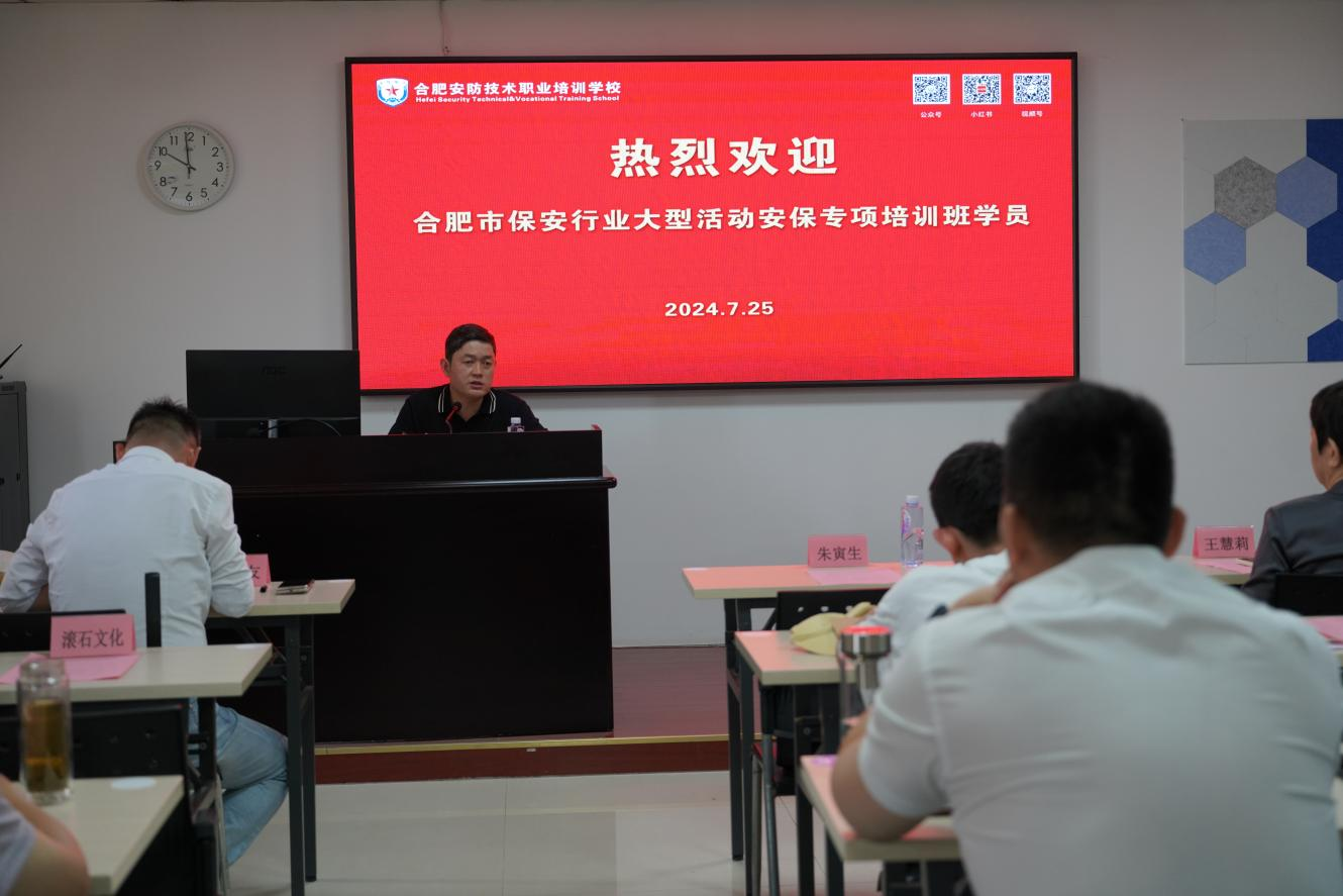 上海黎峰保安服务集团董事长刘传友应邀授课。他结合该集团大型活动组织开展视频、相关案例,从典型案例展示、安保方案制作、指挥体系与工作部署等方面分享了大型活动安保方案编制、大型活动安保管理经验。受到了合肥市保安监管部门负责同志及参训人员的一致好评。