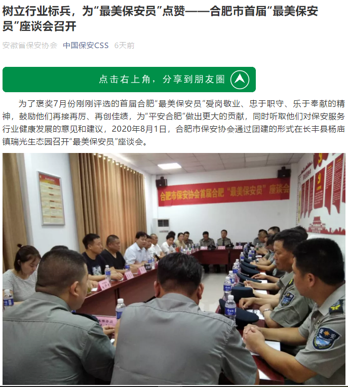 树立行业标兵,为首届合肥“最美保安员”点赞 ——合肥市首届“最美保安员”座谈会召开