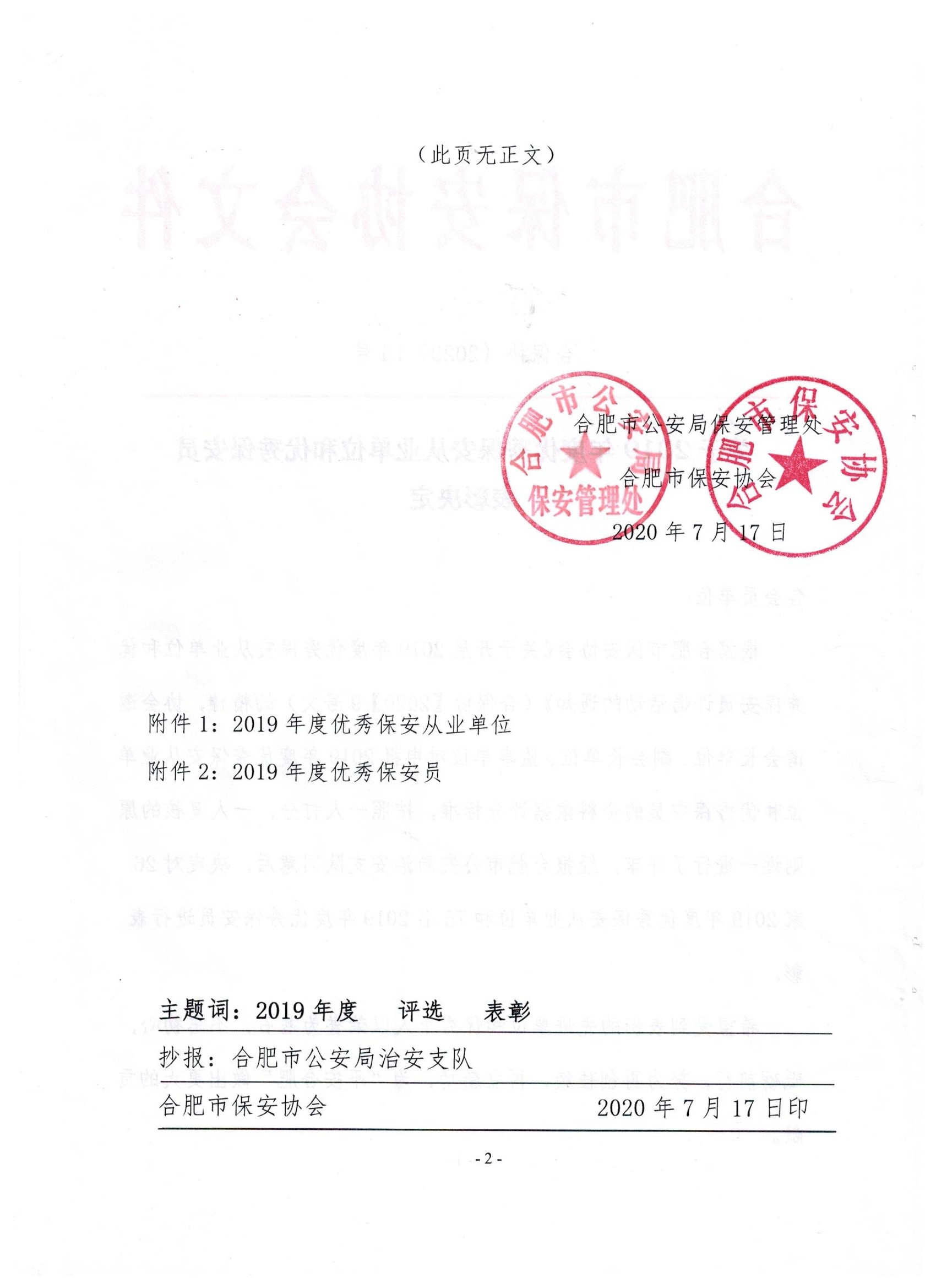 乐发5002020年【15号文】关于2019年度优秀保安从业单位和优秀保安员表彰决定